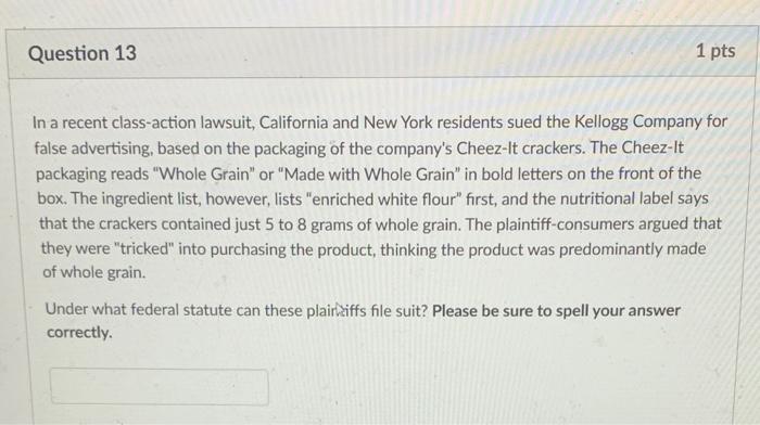 Solved Question 13 1 Pts In A Recent Class Action Lawsuit Chegg Com